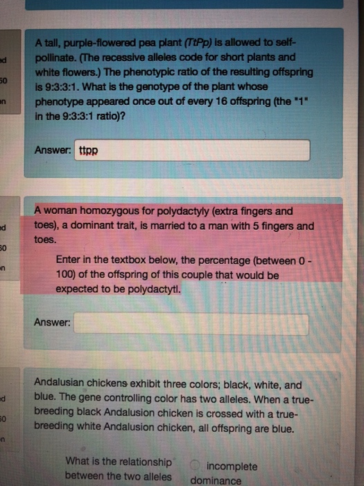 One heterozygous Pp parent plant is crossbred with a homozygous recessive pp parent plant. 17 in pea plants purple flowers are dominant to white flowers Senin 24 Oktober 2022 What percentage of their offspring will have purple.
